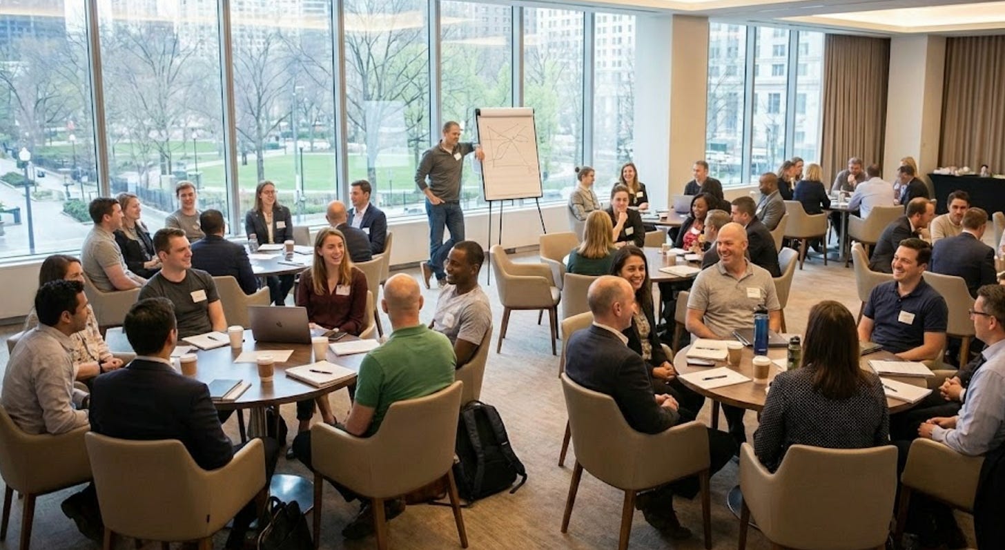Mix of facilitated learning, peer discussion, and tangible outcomes